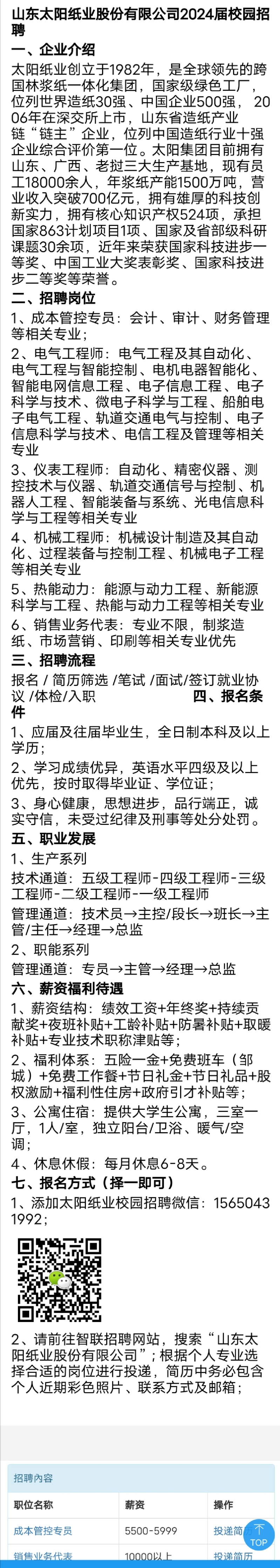 招聘|山东太阳纸业股份有限公司2024届校园招聘
