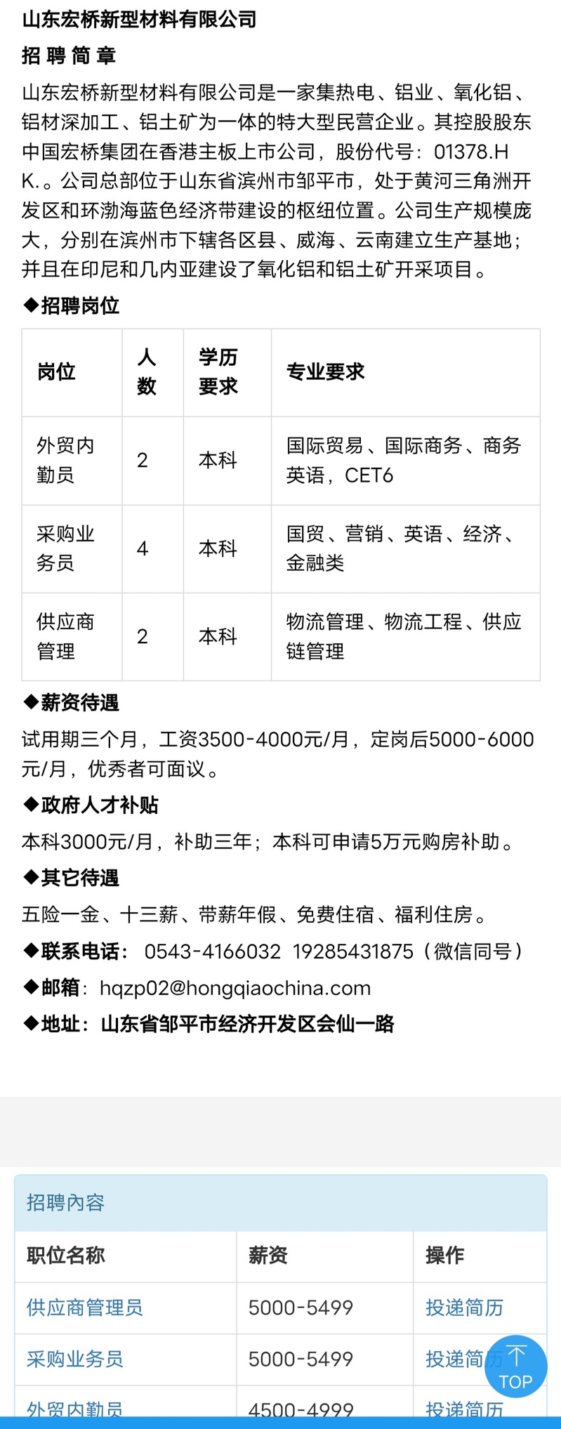 招聘|山东宏桥新型材料有限公司招聘