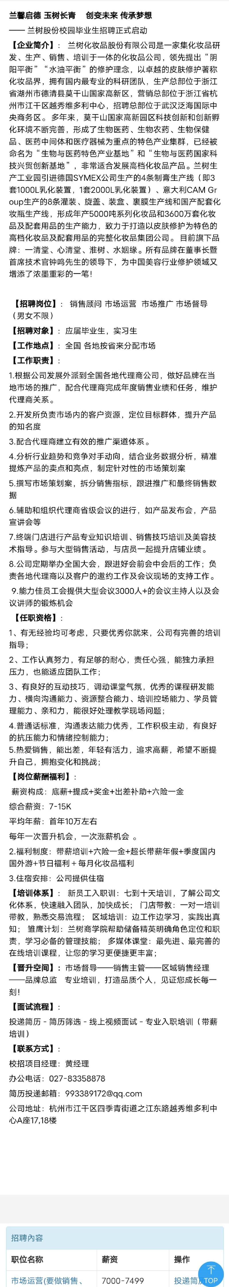 招聘|兰树化妆品股份有限公司