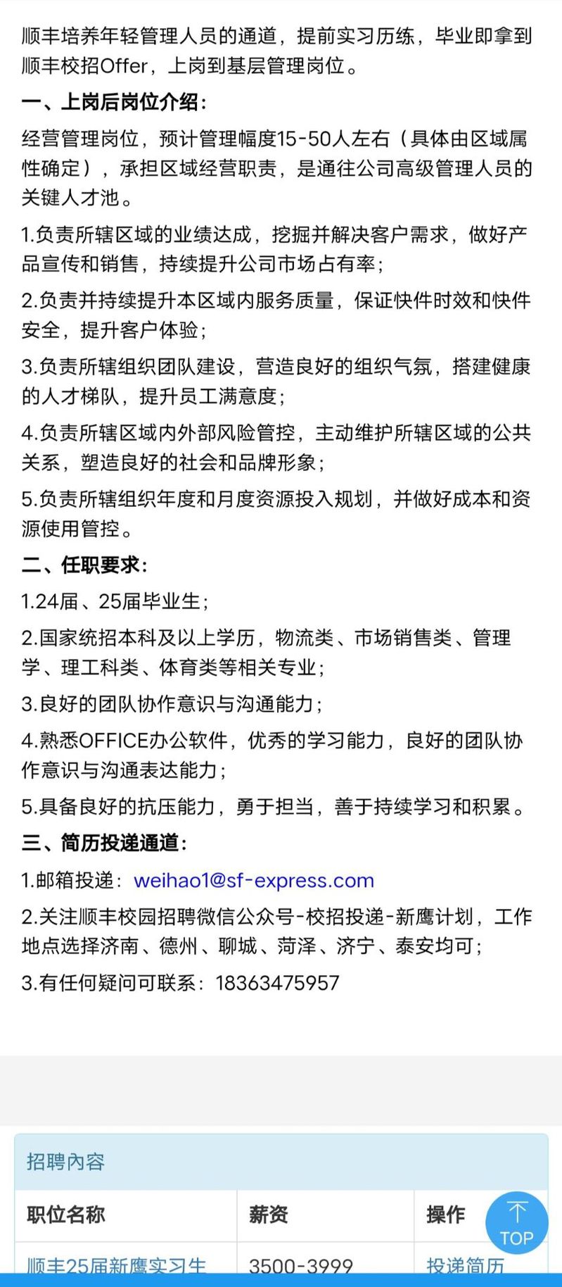 招聘|山东顺丰速运有限公司2025届新鹰实习生招聘