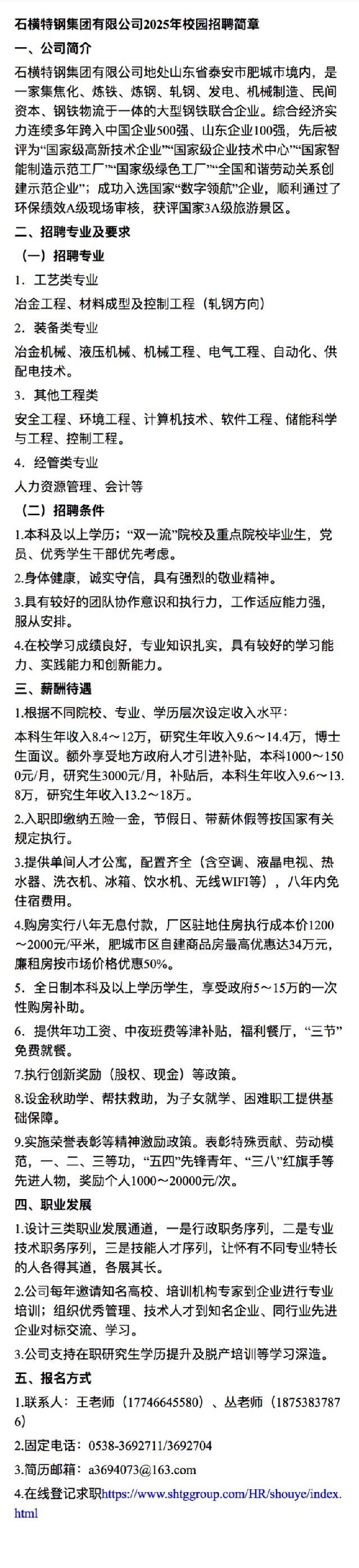 招聘 中国500强-(山东)石横特钢集团公司校园招聘