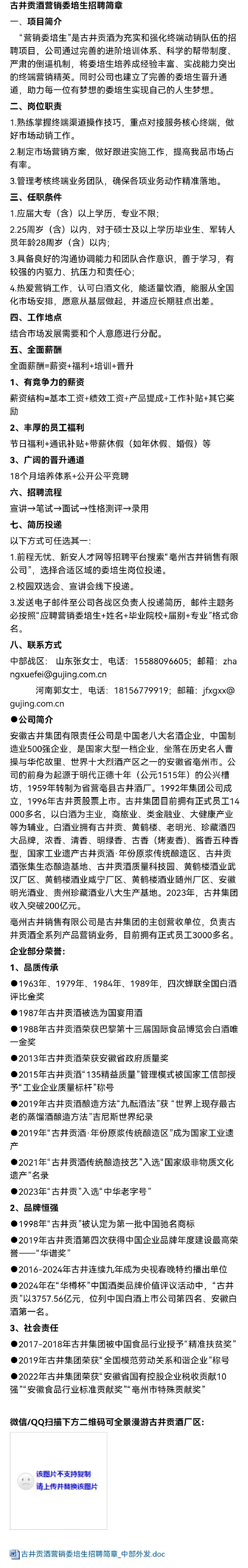 招聘 古井贡酒营销委培生招聘简章