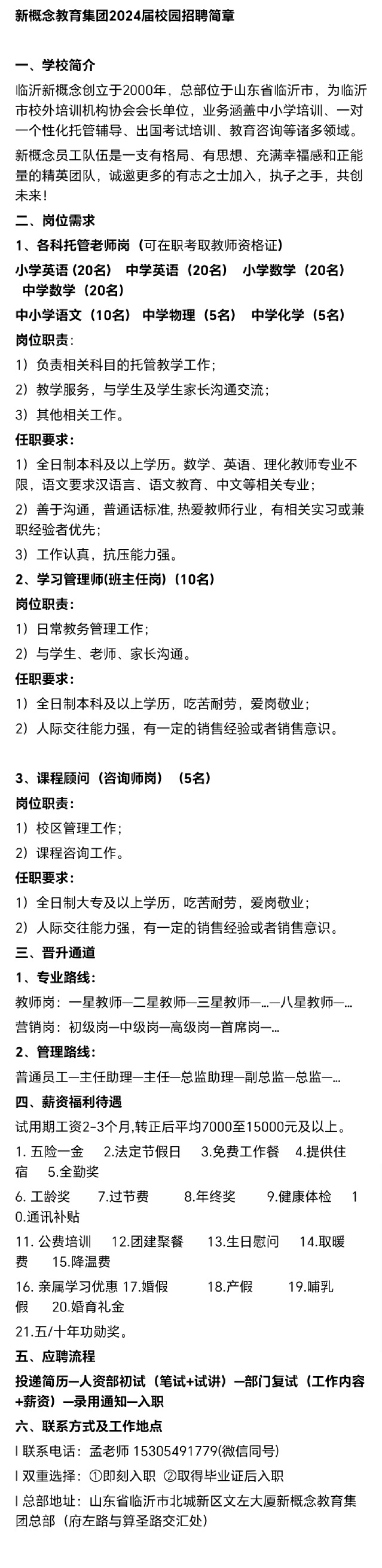 招聘 临沂市兰山区新概念艺术培训学校有限公司