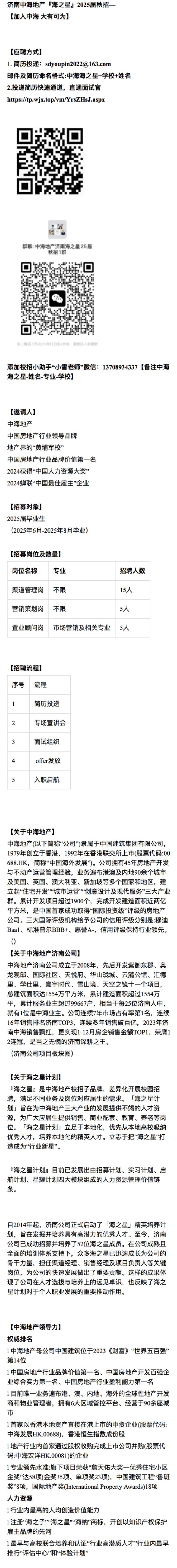 招聘 央企中海地产济南25届“海之星”秋招——加入中海 大有可为