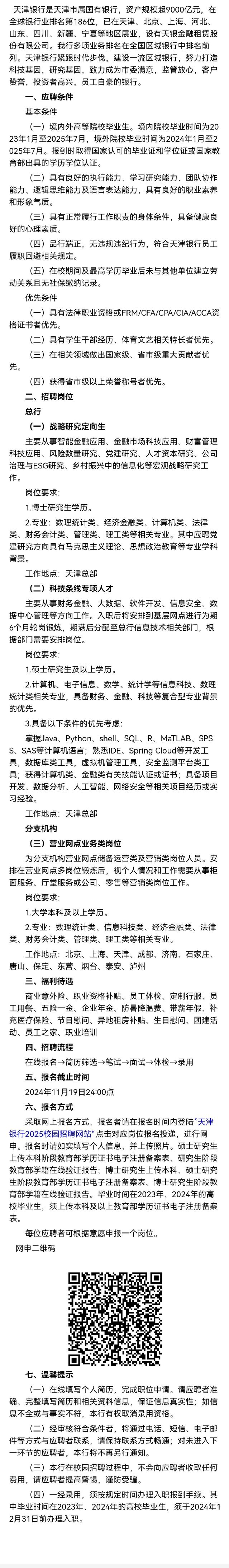 招聘 天津银行股份有限公司烟台分行