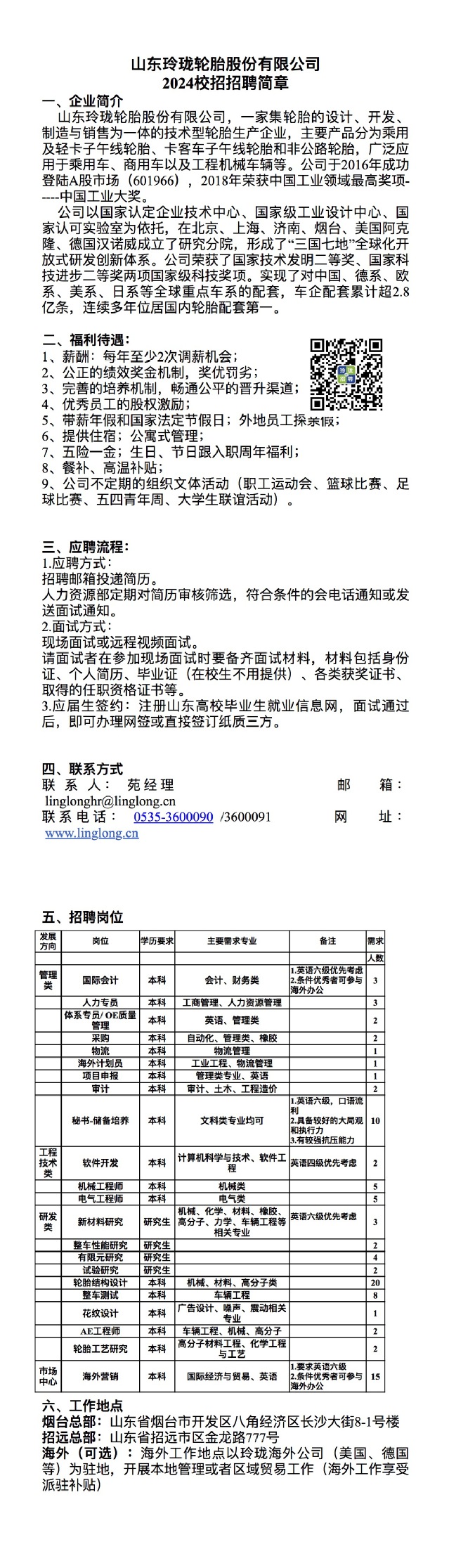 招聘 山东玲珑轮胎股份有限公司
