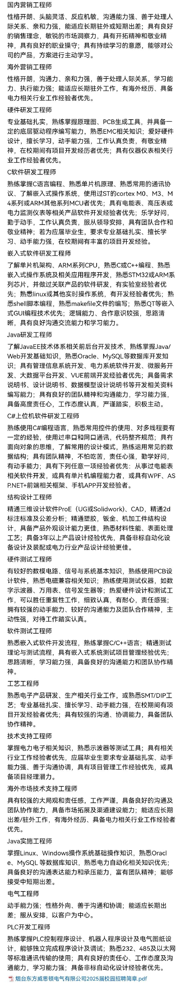 招聘 烟台东方威思顿电气有限公司2025届校园招聘简章