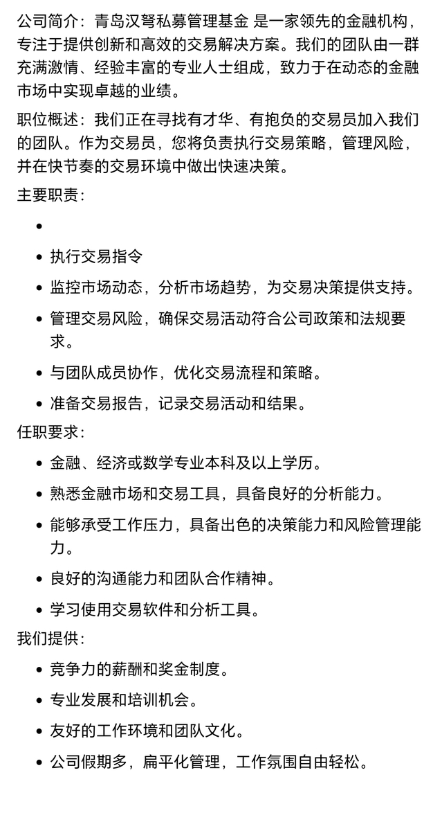 招聘 青岛汉弩私募有限公司