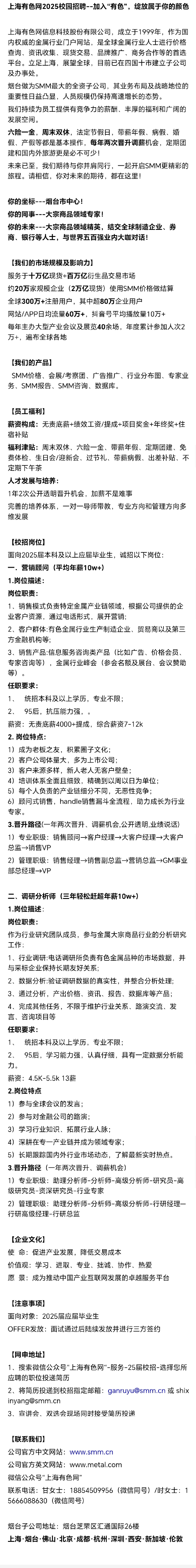 招聘 上海有色网信息科技股份有限公司
