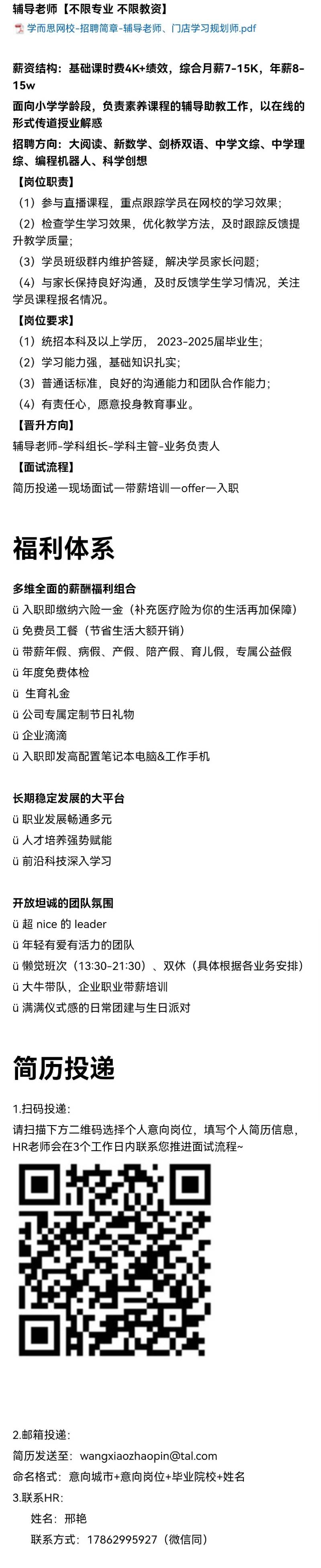 招聘 北京学而思教育科技有限公司济南分公司