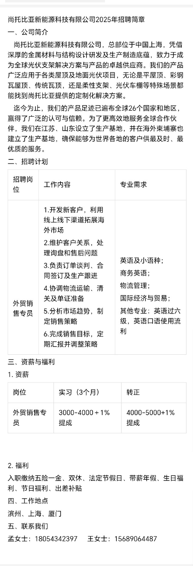 招聘 尚托比亚新能源科技有限公司2025年招聘简章