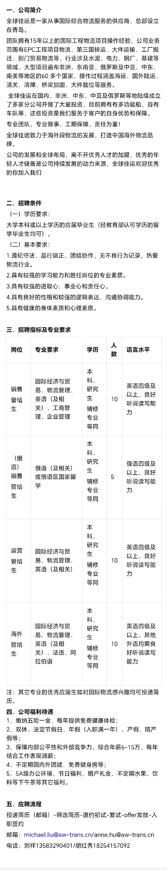 招聘 全球佳运(青岛)供应链有限公司