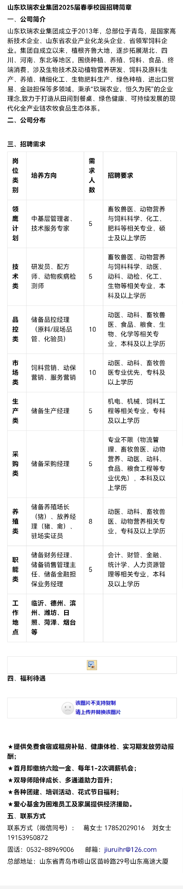 招聘 山东玖瑞农业集团有限公司2025届校园招聘
