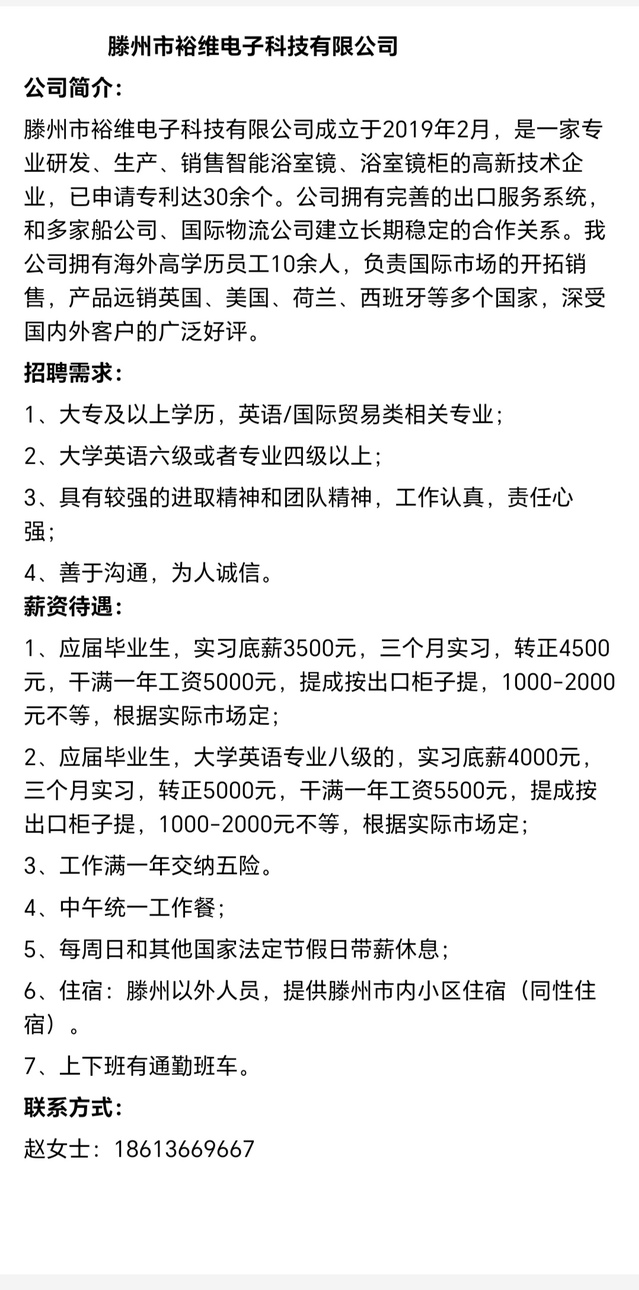 招聘 滕州市裕维电子科技有限公司