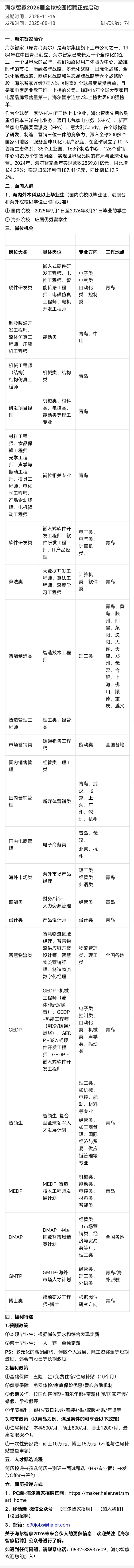 招聘 海尔智家2026届全球校园招聘正式启动