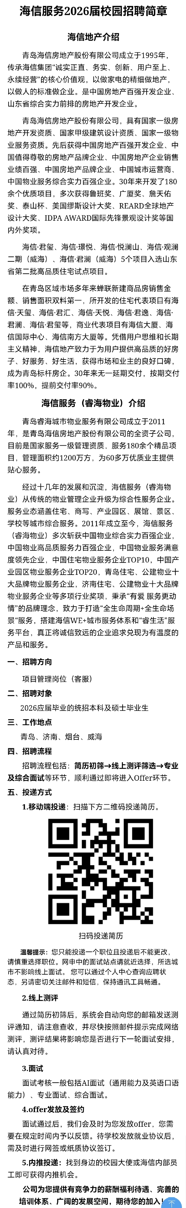 招聘 海信服务2026届校园招聘简章
