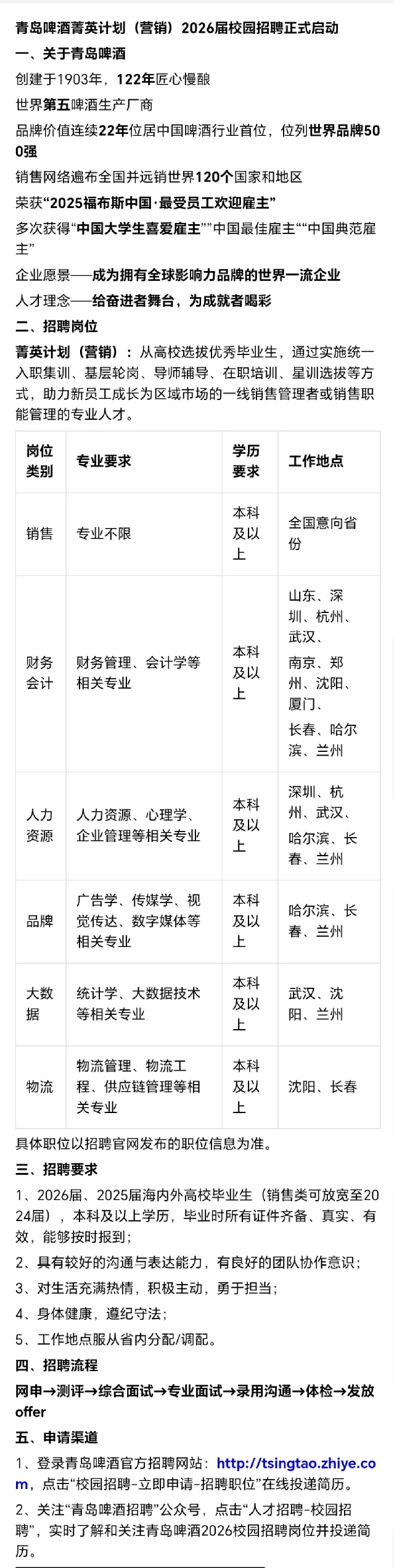 招聘 青岛啤酒菁英计划(营销)2026届校园招聘正式启动