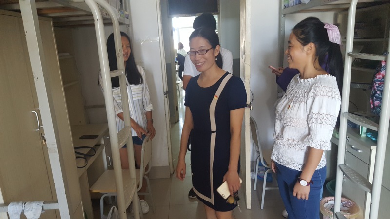 高主任查看了新生的宿舍环境,与新生及其家长进行了亲切的交流,解答了家长们比较关心的一些问题,并详细询问了新生到校后的住宿和餐饮等方面的情况,特别是对一些离家较远的同学,仔细询问了他们是否有不适应的地方,给予他们鼓励和关心。