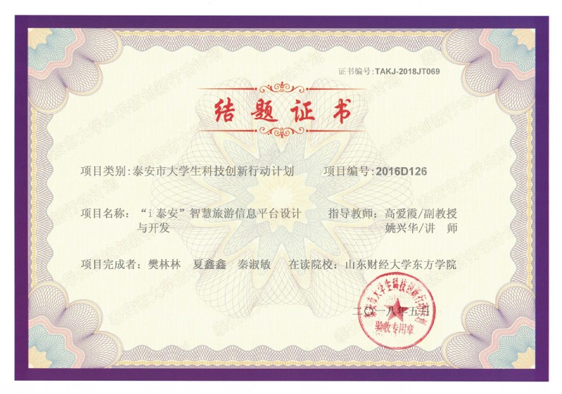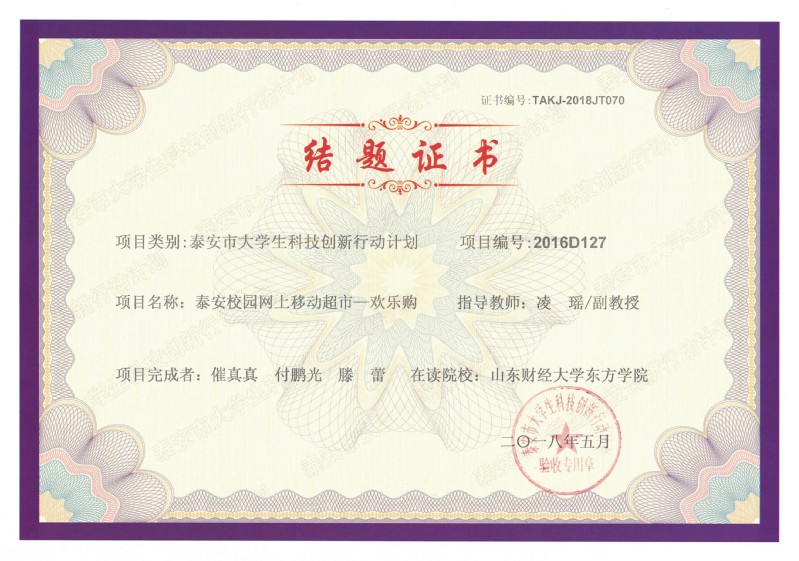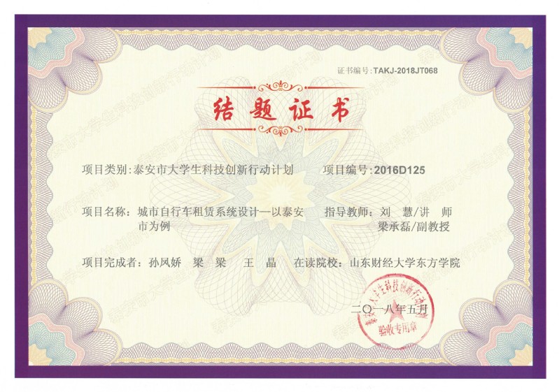 近日,工商管理系3项泰安市科技局大学生科技创新项目顺利结题,刘慧老师和梁承磊老师指导的孙凤娇、梁梁和王晶团队的城市自信车租赁系统设计——以泰安市为例,课题编号:2016D125;高爱霞老师和姚兴华老师指导的樊林林、夏鑫鑫和秦淑敏团队的“i泰安”智慧旅游信息平台设计与开发,课题编号:2016D126;凌瑶老师指导的崔真真、付鹏光和藤蕾团队的泰安校园网上移动超市——欢乐购,课题编号2016D127。三个项目均获得泰安市科技局3000元的课题经费支持。自2014年9月泰安市大学生科技创新行动计划恢复实施以来,在培养大学生创新意识和创新能力、引导大学生创新创业等方面发挥了积极的作用。