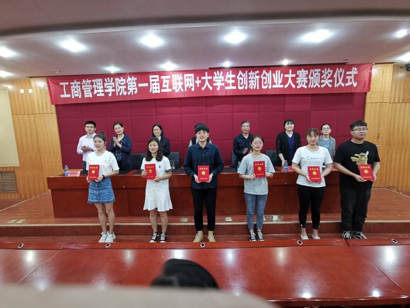 5月15日下午,由工商管理学院双创教育中心、工商管理学院学工办、工商管理学院双创协会共同承办的工行管理学院第一届“互联网+”大学生创新创业大赛颁奖仪式在唯美楼国际报告厅举行。工商管理学院院长李秀荣、副院长郭玉德、高爱霞等多位老师出席颁奖活动。
