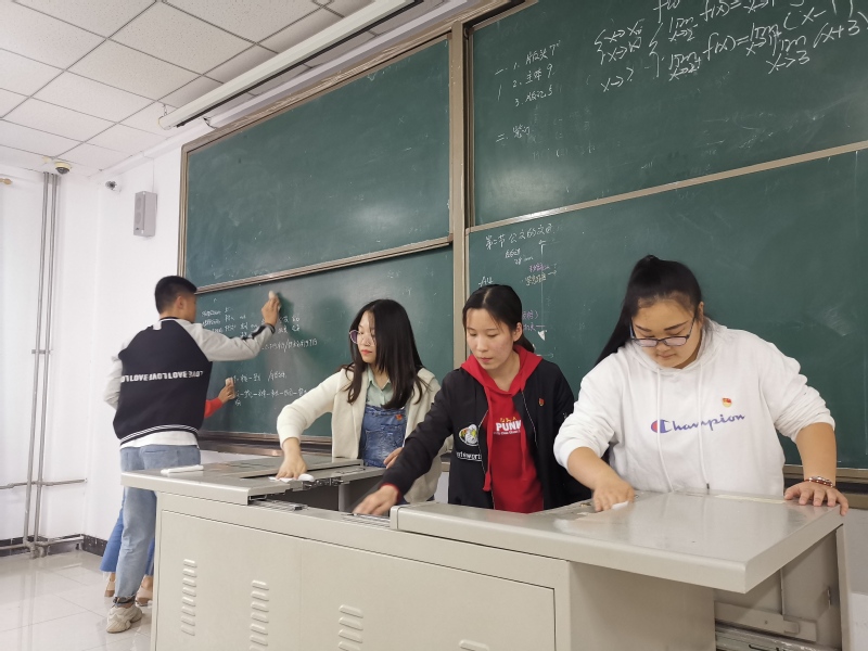 10月13日下午,落实给师生办一件好事,营造良好的学习工作环境的计划,党员们按照分工对五号教学楼即唯美楼的教室死角卫生进行了清理:擦黑板,清理粉笔尘、清理日光灯开关上的污垢……,干的热火朝天,在展现志愿者无私奉献精神的同时更发挥了党员的模范带头作用。