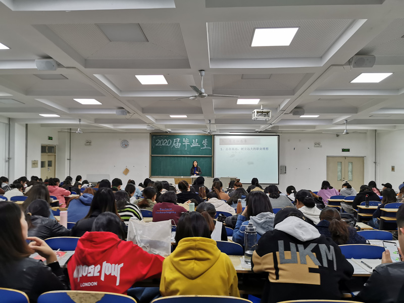 高爱霞院长首先分析了2020年的就业形式,她号召毕业生要以积极乐观的心态面对就业中的困难,要早计划、早准备、抓机遇。同时,高院长向毕业生提出了两点要求:一是调整心态,积极应对就业过程中的各类问题;二是准确定位,认真剖析自己,找准就业方向。高院长还详细介绍了近两年我院的考研考公、就业创业情况,用活生生的案例,倡导同学们要勇敢尝试,积累并总结经验,鼓励同学们要敢于面对就业市场的竞争,大胆拓宽就业渠道。最后,高院长就毕业生关心的问题进行了解答。