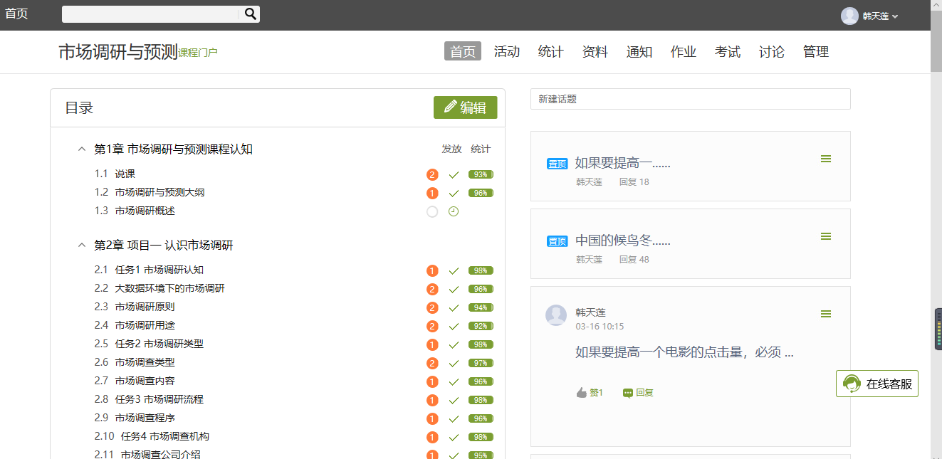 《市场调研与预测》课程的线上教学案例