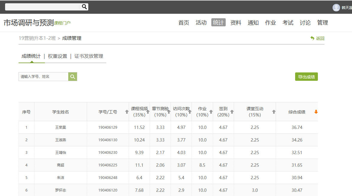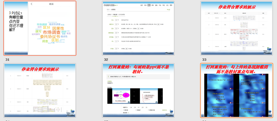 以上是《市场调研与预测》课程“市场调研方案设计”章节内容的网络教学情况,3月16日是单周连上四节课,在四节课的授课过程中设计了签到、直播、测验、讨论等形式,这些是平时成绩的评价依据,随时督促学生积极思考、积极学习、主动学习。直播开始,直播结束。