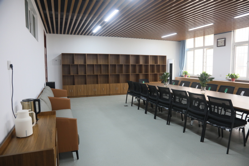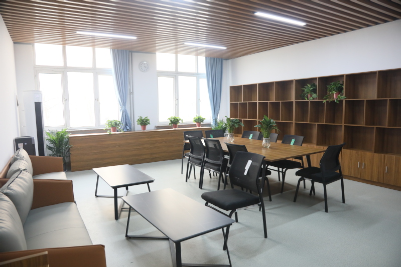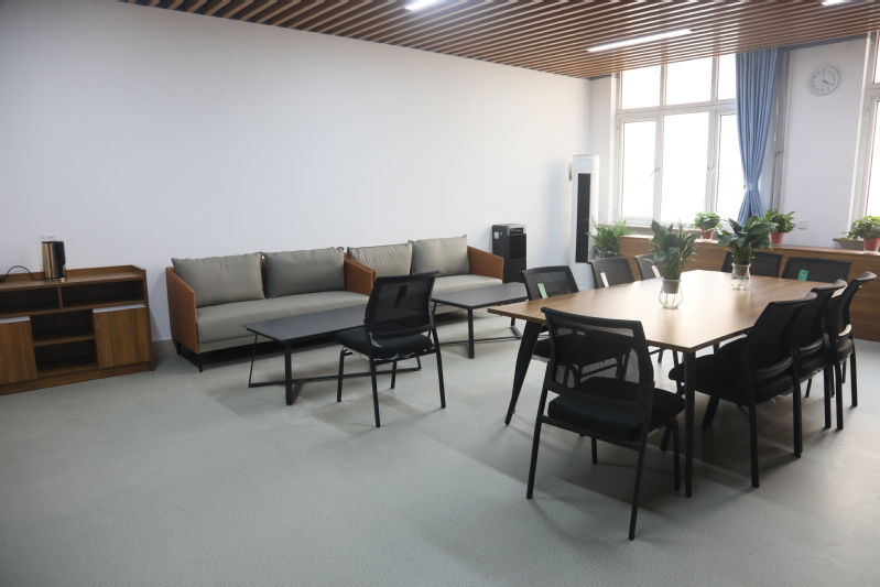 教师休息室设在2号教学楼106室和4号教学楼107室,采用现代简约的装修风格,配置吧台桌、休闲沙发、会议桌椅、茶水柜、储物架、书架等相关办公家具,提供饮水服务,后期还将增加文化装饰等。