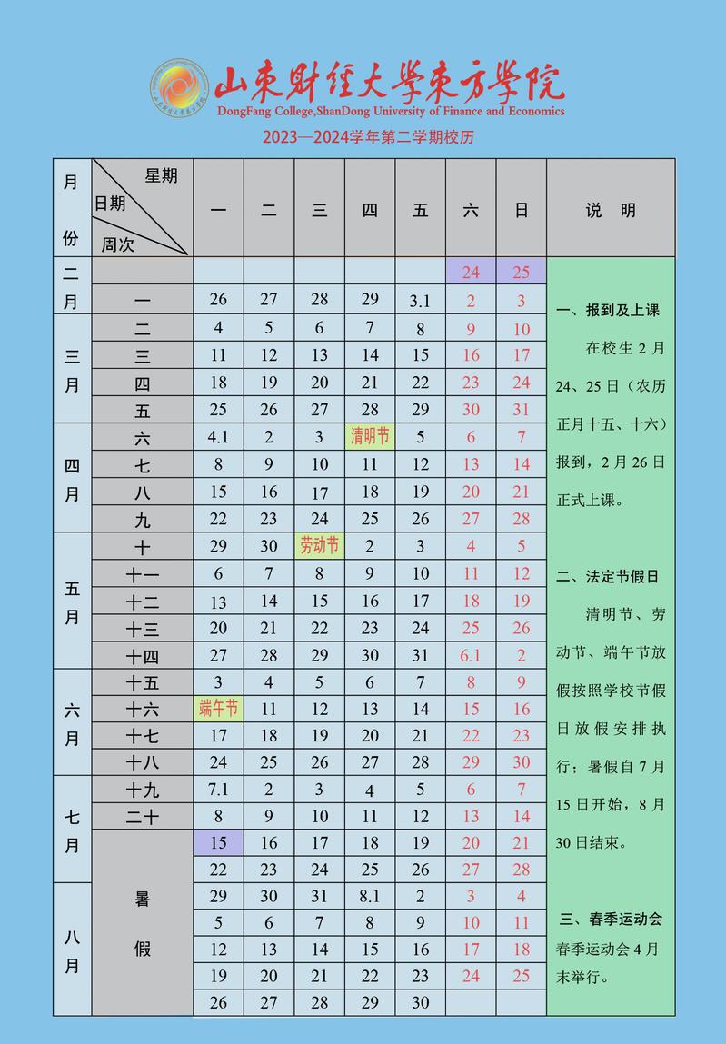 2023-2024学年第二学期校历
