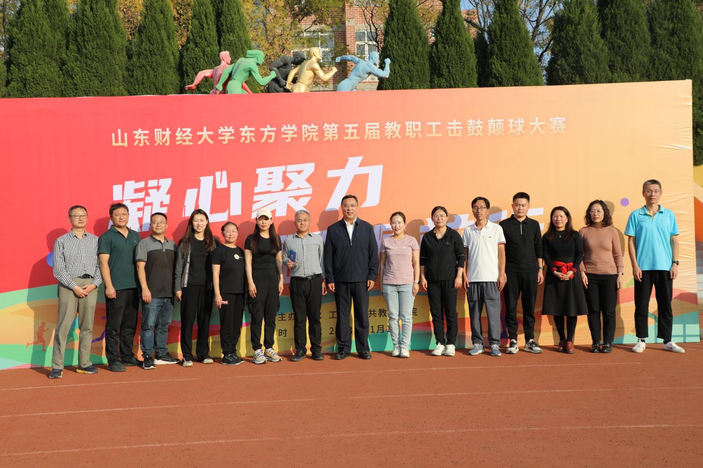 为响应习近平总书记“体育强则中国强,国运兴则体育兴”的号召,11月1日下午,学校举办“凝心聚力 砥砺前行”第五届教职工击鼓颠球大赛。党委书记范玉宝、常务副院长宋保峰出席活动,教务科研处全体成员参加活动,9名成员参赛。