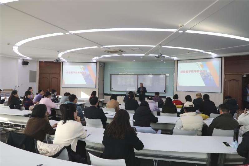 孙延民从开展课堂教学改革的背景、实施计划、工作要求三个方面对首批试点课程的课堂教学改革工作进行了安排部署。孙延民强调,教务处将按照校党委要求,认真落实课堂教学改革工作,加强过程检查,注重改革成效验收,杜绝流于形式。今后,学校会将课堂教学改革工作作为一流专业建设、一流课程建设、课程思政示范课建设等一系列教学建设项目的重要参考指标,统一安排部署,不断推动课堂教学改革工作走实走深。要求各学院要提高认识,会后组织教师积极开展宣传动员,使教师们深刻领会课堂教学改革的精神,深入开展研究讨论,按“一课一案”“一类一案”等形式制定适合本学院开设课程的课堂教学改革实施细则,确保将课堂教学改革工作落实到位。