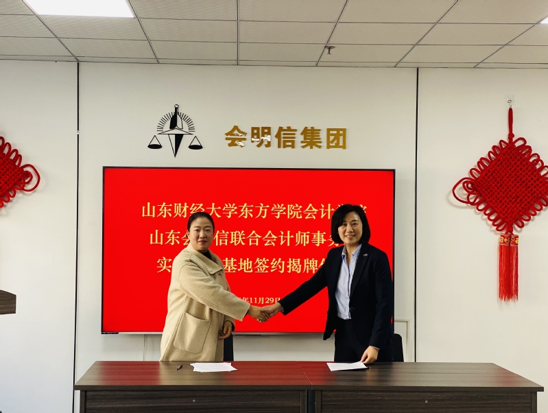 山东会明信联合会计师事务所所长张会艳、副所长韩春梅、王婷婷等出席并签订了实践教学基地协议,并举行揭牌仪式。此次合作标志着双方在人才培养、教学科研以及实践教学、实习就业等多个方面迈出了坚实的步伐。