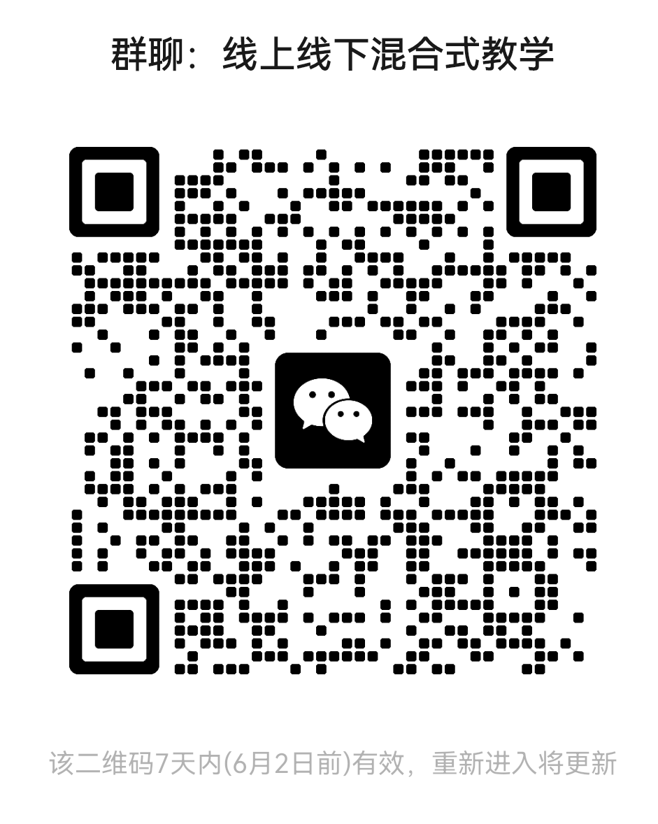 (三)申请方式。课程负责人于2025年5月31日前通过OA系统进行申请,经学院负责人审核通过后上传《线上线下混合式教学计划申报表》签字盖章的PDF版,过期不予受理。为方便沟通,申请通过的教师请扫描下方二维码进群。以学院为单位,填写《线上线下混合式教学计划申报汇总表》于6月3日前报送至教研科坤元楼206办公室。