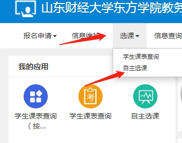 (2)在选课界面—“自主选课”—“网络选修课”—“查询”。就会显示本学期所有网络课程,学生根据需要自行选课即可。