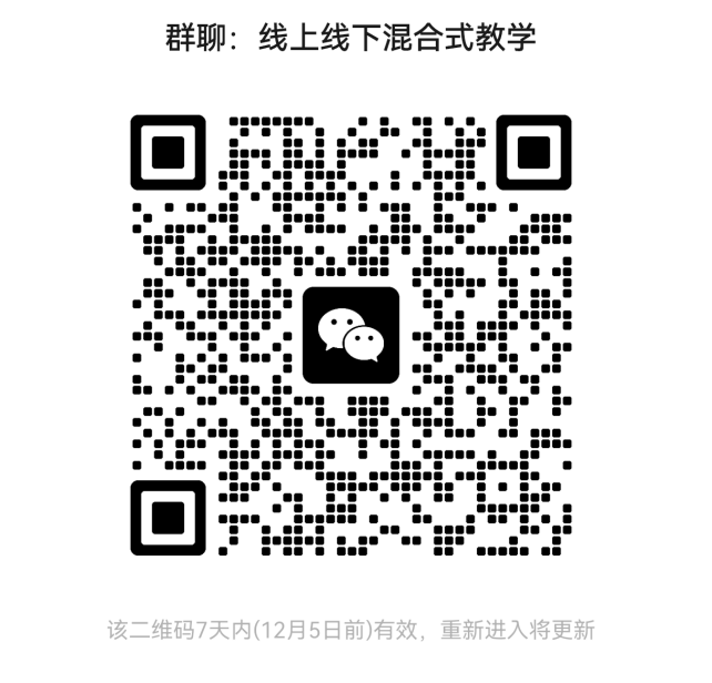 (三)申请方式。课程负责人于2025年12月10日前通过OA系统进行申请,经学院负责人审核通过后上传《线上线下混合式教学计划申报表》(附件1)签字盖章的PDF版,过期不予受理。为方便沟通,申请的教师请扫描下方二维码进群。以学院为单位,填写《线上线下混合式教学计划申报汇总表》(附件2)于12月12日前报送至教研科坤元楼206办公室。