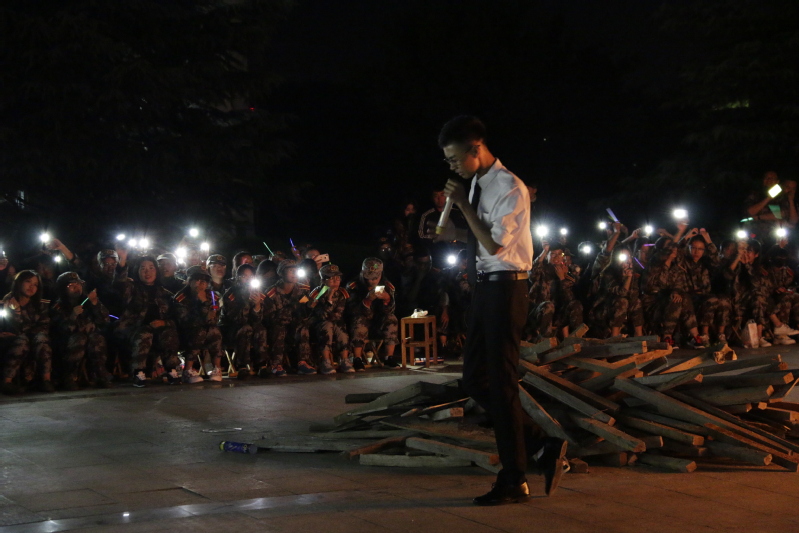活动开始前,2018级460余名新生统一就座,秩序井然,7点钟,活动正式开始。在四位主持人的介绍下,在场观众倒计时点燃了熊熊篝火。一团篝火点燃了在场观众的激情,整个场面灯火相应又不失温馨的色彩。歌声悠扬,新生们挥动手中的荧光棒和手机。晚会由2018级金融管理4班杨文嘉演唱的《最美的期待》拉开序幕,紧接着女生独唱《真的爱你》,男生独唱《这个世界不太好》令人难忘。大学生艺术团带来的爵士舞蹈燃爆全场,顿时场面沸腾起来。金专4班学生与班导带来的《光明》和《春风十里》与金数2班学生和班导带来的《陷阱》以班级对抗的形式活跃了现场气氛。本次晚会不单是流行歌曲,还包含了我国国粹经典,学习过京剧的刘建苇同学带来的《贵妃醉酒》和张景铖和张国良同学带来的相声表演让同学们体会到了精彩的国粹表演。新生们纷纷献唱《红玫瑰》、《你给我听好》、《越来越不好》等。金融学大数据专业本科1班闵婕带来了拉丁独舞,舞姿优美,令人叹服。