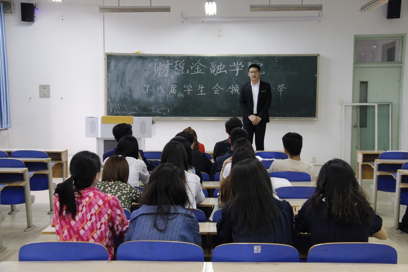 5月15日的下午18:00 ,财税金融学院于教学楼3210举行了第八届学生会换届选举,此次竞选的职位有:学生会主席、副主席和各部门部长。财税金融学院辅导员董一鸣老师、宋萍老师、王涵老师以及上一届学生会成员参与了本次换届选举。