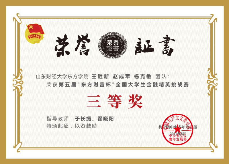 本届挑战赛共吸引全国1781所高校参与,其中包括39所985高校、15所综合类财经大学。大赛分校赛、省赛、国赛三个阶段,我校学生表现出极高的参赛热情,一路过关斩将,相互配合,经过激烈的角逐,最终荣获全国一等奖2项,二等奖1项,三等奖1项的好成绩,并在省赛阶段取得山东省第一名的优异成绩,展现了我校学生的风采。