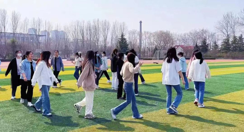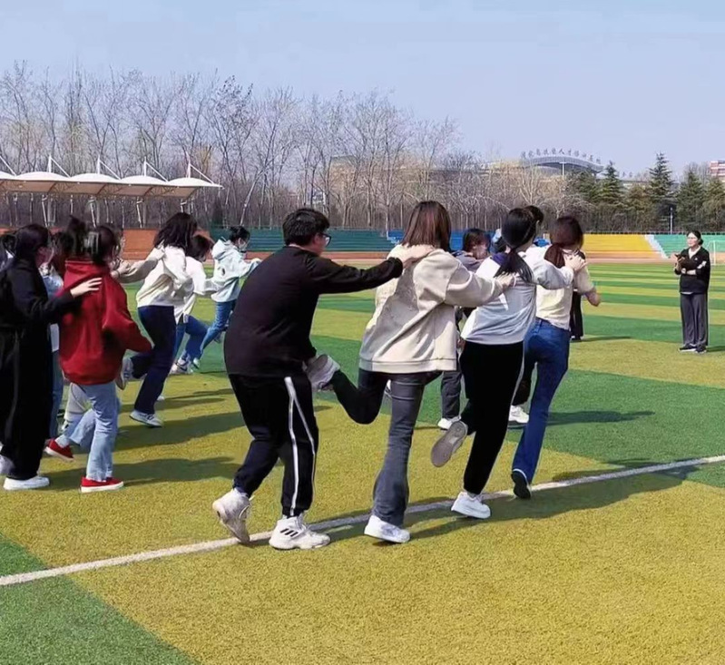 本次活动分为两个部分,一部分是抱团取暖,另一部分是单脚跑火车。抱团取暖要求参赛者通过自由组合,站成一列,在口令指示下抱团环绕,让她们在环绕的过程中抛开烦恼、忘记标签,享受疫情结束后自由自在的大学生活。单脚跑火车是让参赛小组于同一起跑线上右脚站立,搭住肩膀托住左脚前进20米赛程,这部分活动内容旨在锻炼学生的身体协调能力,增加彼此之间的交流和信赖,让她们在集体中更好地成就自我。本次活动秉着友谊第一,比赛第二原则,既促进女生之间的团队协作,又传递了关爱女性、尊重女性的女生节精神。