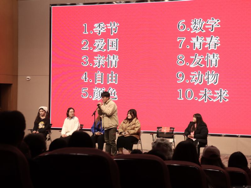 在最后一轮中,六名选手要根据所给名词抢答并演唱有关歌曲,现场气氛十分高涨。在场参赛同学根据“未来”“青春”“梦想”等词汇激情献唱,演绎出一场场精彩的表演。待选手抢答演唱后,图书馆内观众的掌声此起彼伏,洋溢着青春的气息。