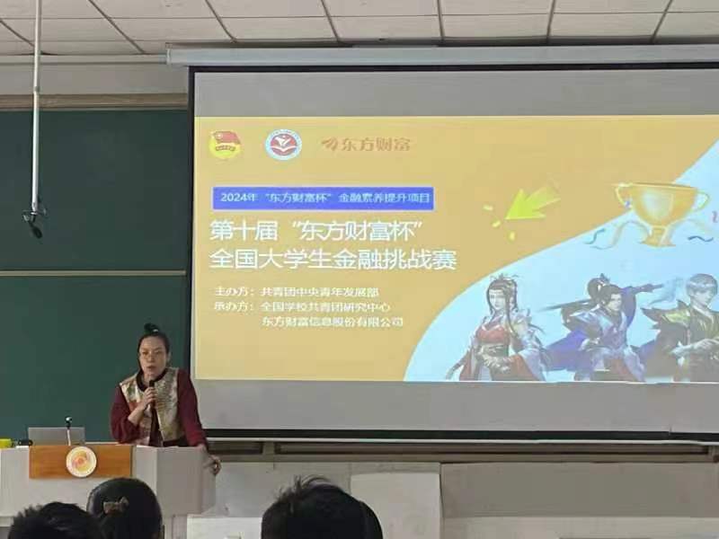 2024年4月19日上午,财税金融学院在5号教学楼多媒体教室举行了“第十届东方财富杯全国大学生金融精英挑战赛启动仪式暨金融挑战赛投资专题讲座”活动。东方财富泰安营业部经理李祎星、营业部合规总监杜雪应邀参加了本次活动,活动由财税金融学院副教授张晓丽主持。