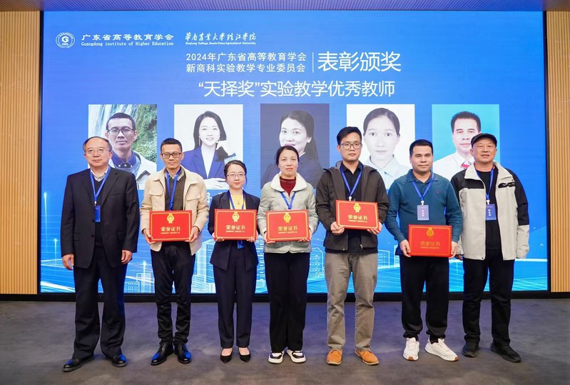 年会表彰了20名天择奖广东省高等学校新商科实验教学优秀教师。专委会理事长王小燕、华南农业大学珠江学院校长蒋恩臣、国家级实验教学示范中心联席会经管学科组副组长任晓阳、顾问专家尤赤矶和毛志山、新商科实验教学创新与共享联盟全国常务副理事长丛建阁、暨南大学经济管理国家级实验教学示范中心原主任王斌会、深圳天择教育科技有限公司董事长曹胜利共同为获奖教师颁发了荣证书和奖金。华南农业大学珠江学院刘文杰老师代表获奖教师发言。