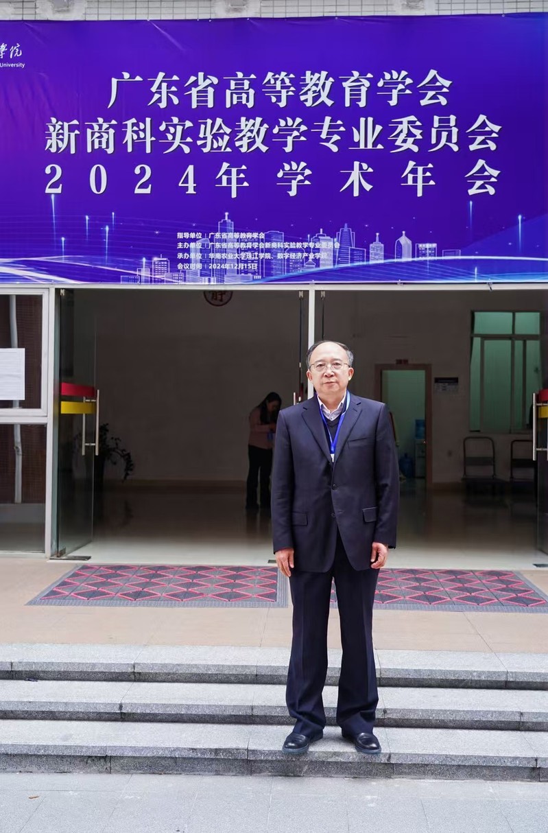 2024年12月15日,由广东省高等教育学会新商科实验教学专业委员会主办,华南农业大学珠江学院和数字经济产业学院承办的2024年学术年会在广州隆重召开。本次年会以“AI赋能实验教学,创新商科人才培养”为主题,旨在总结专委会过去一年的工作,分享会员单位在新商科实验教学建设经验和成果,探讨如何利用AI等数字技术推动新商科实验教学的改革与发展,培养适应社会需求的创新型商科人才。来自省内外高校、行业协会、企业单位的有关领导、专家学者、专委会会员代表近150人参加会议。我院院长丛建阁应邀参加。年会开幕式由广东省高等教育学会新商科实验教学专业委员会秘书长、广东金融学院互联网金融与信息工程学院副院长钟雪灵教授主持。
