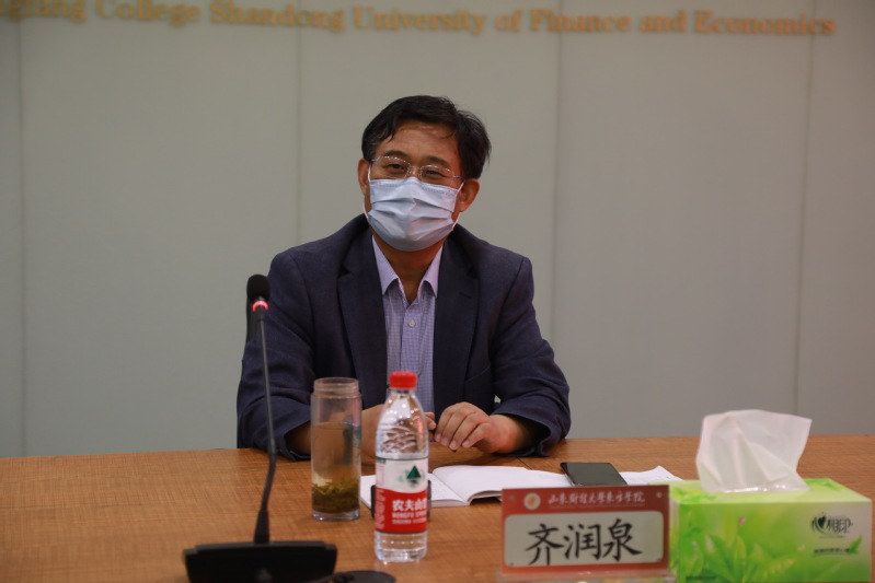 在座谈中,齐润泉对我校疫情防控和开学准备工作给予充分肯定,他指出,山财大东方学院春季开学工作行动早、措施细、落实到位,一是领导重视,措施具体。对上级关于疫情防控的政策和指示精神领会透彻,对疫情防控和开学准备工作有周密安排。二是工作扎实,制度、设施和管理到位;三是开学准备档案材料齐全、完整、清晰。他对东方学院此次核验工作表示满意,同时对现场检查发现的防疫设施建设等细节问题提出了进一步补充完善的建议。