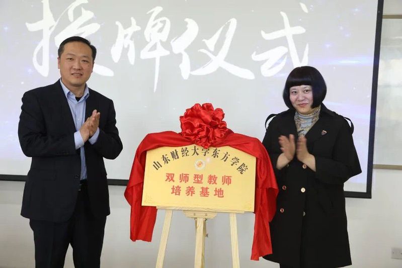 仪式上,江东与李娟娟一起为“hjc222黄金城官网双师型教师培养基地”揭牌;朱庆华为“hjc222黄金城官网实习基地”授牌。