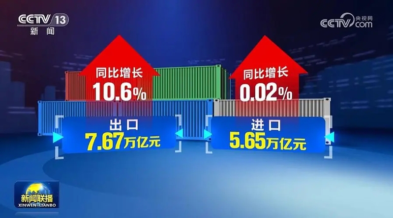 据海关统计,今年前4个月,我国进出口总值13.32万亿元人民币,同比增长5.8%。其中,出口7.67万亿元,增长10.6%;进口5.65万亿元,增长0.02%;贸易顺差2.02万亿元,扩大56.7%。按美元计价,今年前4个月我国进出口总值1.94万亿美元,下降1.9%。其中,出口1.12万亿美元,增长2.5%;进口8227.6亿美元,下降7.3%;贸易顺差2941.9亿美元,扩大45%。