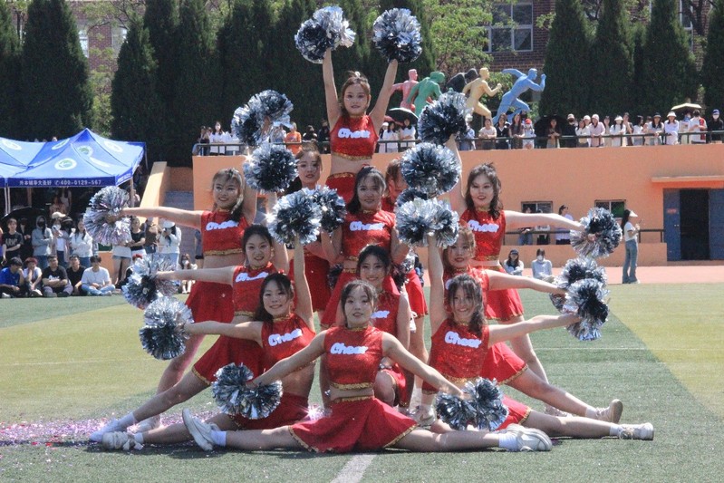 学院啦啦操队员身姿矫健,激情四射,为运动健儿欢呼助力,成为运动场上靓丽的风景。
