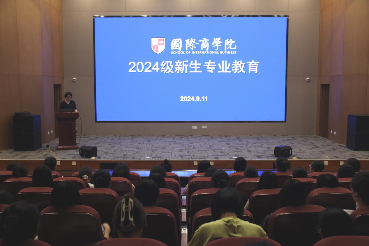 为帮助2024级新生尽快适应大学生活,了解所学专业,明确学习目的,科学规划大学学习生活,9月11日上午,国际商学院在图书馆3楼报告厅举行了新生专业教育活动。活动由吴国艳副院长主持,国际商学院领导、各教研室老师、辅导员及全体2024级新生参加。