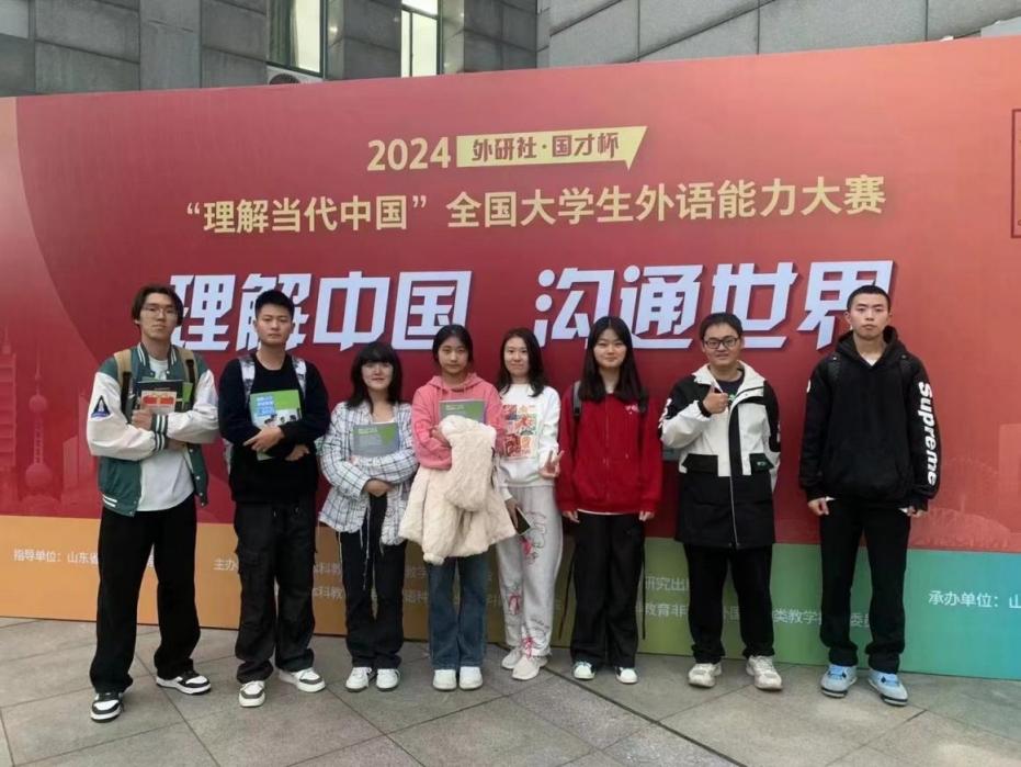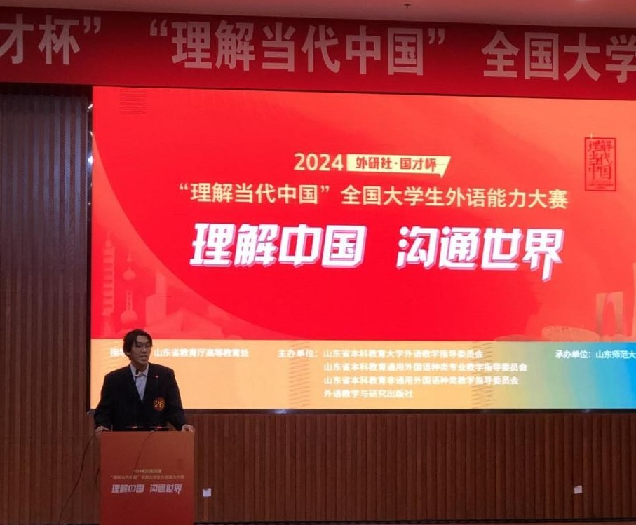 11月2日至3日,2024“外研社•国才杯”“理解当代中国”全国大学生外语能力大赛山东省省赛在山东师范大学进行。国际商学院商务英语教研室老师单君带领8位同学代表学校参加演讲大赛、综合能力大赛和笔译大赛,来自会计学院的2024级学生孙家良荣获演讲大赛银奖,其他参赛学生获优胜奖。